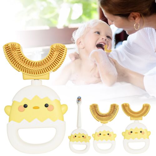 This fully automatic U-shaped electric toothbrush gently removes dental deposits, while the ultra-soft silicone bristles respect the sensitivity of your baby's teeth and gums.